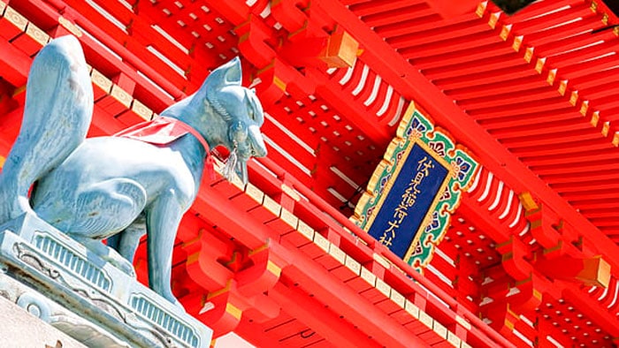 El kami Inari, un kitsune o zorro al que se le dedica el complejo arquitectónico, se trata de una entidad protectora de los campos, la agricultura y las cosechas que conforman un pilar fundamental para la vida en Japón.
