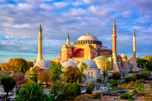 La obra más grande y sagrada de época bizantina. Utilizada como iglesia durante 916 años desde su construcción en el 537 hasta la conquista de Estambul en 1453, fecha tras la cual se ha utilizado como mezquita hasta la actualidad.